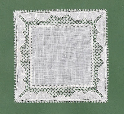 Ahora que ya conseguí llevar cada hilo a su lugar para el remate, he realizado este ejercicio. Lo he comenzado donde el fondo tiene tres puntos y medio y el remate apenas se aprecia. De nuevo estoy contenta con el resultado y esta vez está el trabajo ajustado a mi gusto. El diseño corresponde a la publicación KANT 1999 - 3